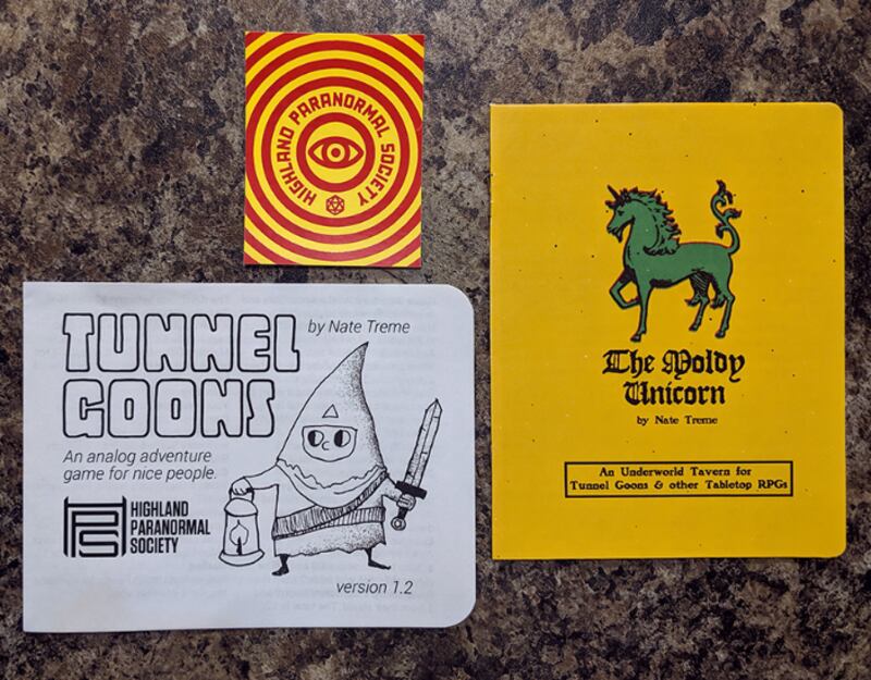 Treme has also hosted game jam events, challenging others to make their own games based off his game Tunnel Goons, which he says has over 150 games made based on it. Additionally, Treme’s Highland Paranormal Society has a very successful Patreon, with 640 members subscribed, where he publishes games and other content for his fans. His Patreon’s monthly subscriptions range from just $2 Paranormal Investigator, $5 Paranormal Researcher, and $10 Paranormal Entity. Those who are Paranormal Entities even get random miniature games mailed out to them sometimes.